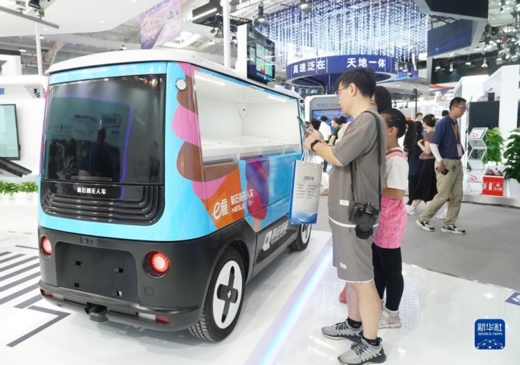 这是9月3日在首钢园拍摄的一款无人车。 2023年中国国际服务贸易交易会于9月2日至9月6日在北京举办,众多科技产品亮相展区,吸引观众驻足参观。 新华社记者 任超 摄