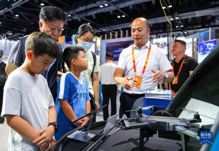 9月3日,参展商在国家会议中心向参观者介绍无人机球形机巢。 2023年中国国际服务贸易交易会于9月2日至9月6日在北京举办,众多科技产品亮相展区,吸引观众驻足参观。 新华社记者 陈朔 摄