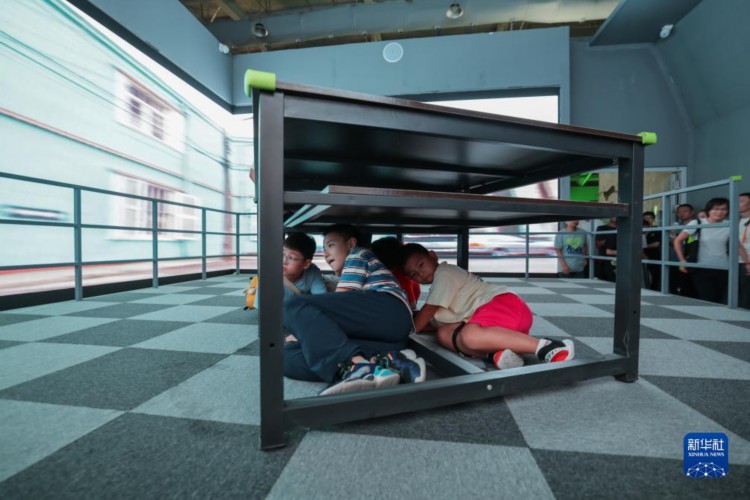 9月3日,小朋友在首钢园内进行模拟地震体验。 2023年中国国际服务贸易交易会于9月2日至9月6日在北京举办,众多科技产品亮相展区,吸引观众驻足参观。 新华社记者 张玉薇 摄