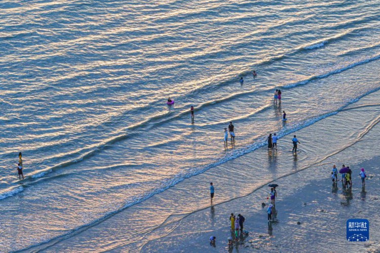 游客在海南省三亚市三亚湾游玩(8月30日摄)。三亚湾位于海南省三亚市主城区南部,海域面积75平方千米,是三亚市作为著名旅游目的地的重要资源依托。 近日,生态环境部公布了第二批12个美丽海湾优秀案例,海南海口湾、三亚湾入选。美丽海湾是指水清滩净、鱼鸥翔集、人海和谐,能够持续提供优美海洋环境和优质生态产品、满足人民群众日益增长美好生活需要的海湾,是美丽中国建设在海洋领域的集中体现和实践载体。 新华社记者 蒲晓旭 摄