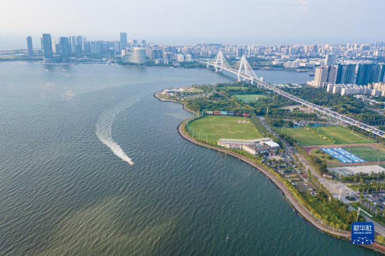 9月1日在海南省海口市拍摄的海口湾景色(无人机照片)。海口湾位于海南省海口市中心区,海湾面积268.2平方千米,打造了“椰风海韵、湾城融通”的海湾景观,是海口市发展的重要依托和生态名片。 近日,生态环境部公布了第二批12个美丽海湾优秀案例,海南海口湾、三亚湾入选。美丽海湾是指水清滩净、鱼鸥翔集、人海和谐,能够持续提供优美海洋环境和优质生态产品、满足人民群众日益增长美好生活需要的海湾,是美丽中国建设在海洋领域的集中体现和实践载体。 新华社记者 蒲晓旭 摄
