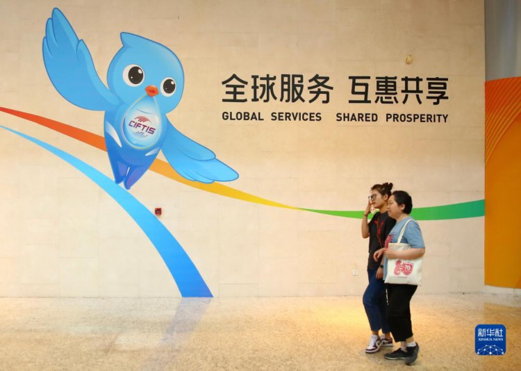 9月3日,观众从国家会议中心“福燕”宣传标志前走过。 2023年中国国际服务贸易交易会吉祥物“福燕”形象取材于北京雨燕,名字谐音“赴宴”,寓意邀请国内外展商及观众共赴服务贸易盛宴。2023年服贸会上,基于“福燕”形象创作的各类文创产品广受人们喜爱。 新华社记者 孙玮彤 摄
