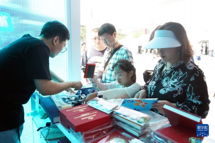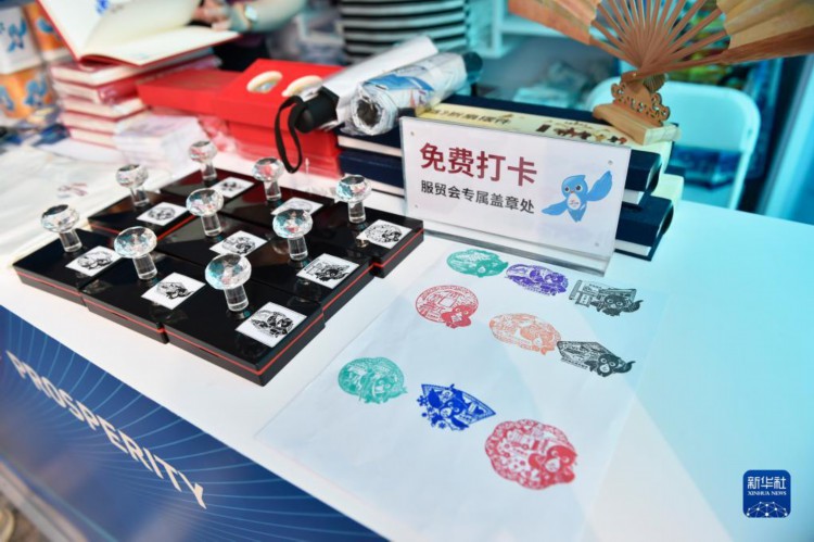 9月2日在首钢园区一个服贸会官方特许商品店拍摄的“福燕”形象打卡印章(9月2日摄)。 2023年中国国际服务贸易交易会吉祥物“福燕”形象取材于北京雨燕,名字谐音“赴宴”,寓意邀请国内外展商及观众共赴服务贸易盛宴。2023年服贸会上,基于“福燕”形象创作的各类文创产品广受人们喜爱。 新华社记者 刘岭逸 摄