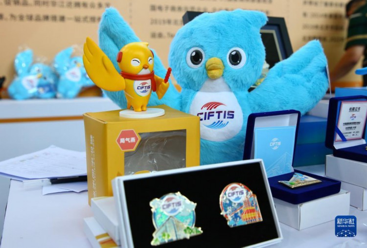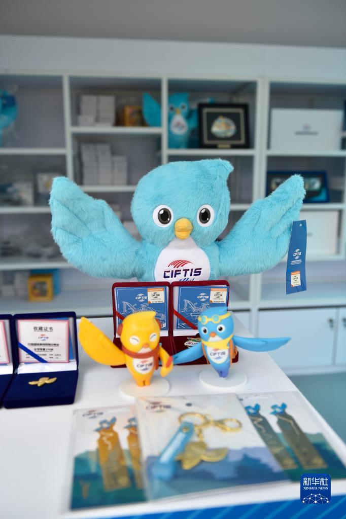 9月3日在国家会议中心拍摄的服贸会官方特许商品。 2023年中国国际服务贸易交易会吉祥物“福燕”形象取材于北京雨燕,名字谐音“赴宴”,寓意邀请国内外展商及观众共赴服务贸易盛宴。2023年服贸会上,基于“福燕”形象创作的各类文创产品广受人们喜爱。 新华社记者 孙玮彤 摄