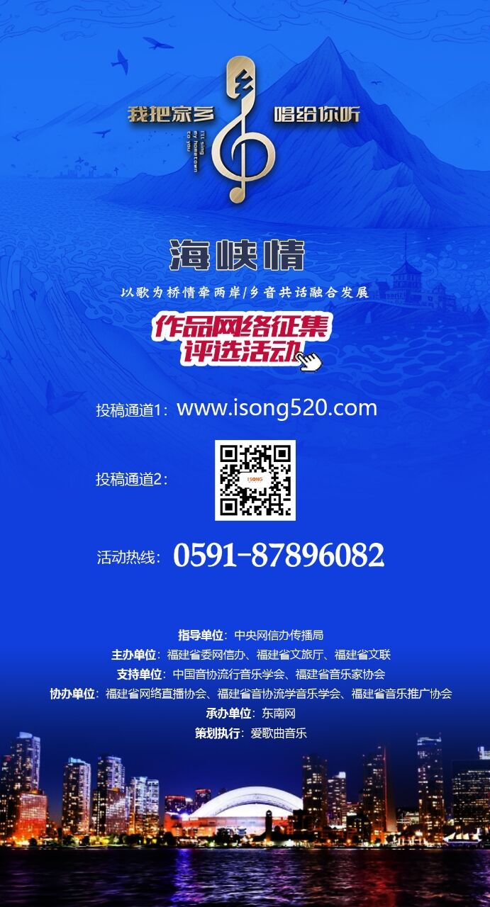 由中央网信办传播局指导,省委网信办、省文旅厅、省文联主办,东南网承办,福建省音协流行音乐学会、省音乐推广协会、省网络直播协会协办“我把家乡唱给你听·海峡情”海峡两岸音乐作品网络征集目前在火热进行中。在征集的参赛作品中,写“乡愁”的歌曲不少,用歌声唱出了家乡的“根与魂”,塑造出一幅乡愁里的当代乡土中国的美丽图景。 目前活动还在征集歌曲阶段,同时组委会将从征集到的参赛作品中,挑选出部分歌曲进行在东南网、海峡网、闽南网等媒体矩阵展播,并在抖音、视频号等平台,用媒体官方号、组委会官方号全方位推送展示。 "海峡情”展播(7) 作品名称:蓝眼泪 作曲:陈 丁 作词:林晓峰 演唱:平潭蓝眼泪合唱团 创作介绍: 《蓝眼泪》MV由平潭蓝眼泪合唱团演唱,它以浑厚的音乐旋律,奋进的情感,用小合唱的方式来诠释对平潭自然风光和人文景观的赞美,将平潭“一岛两窗三区”建设的新成效、新面貌贯穿其中,在不同场景的情景化呈现中,深情讴歌伟大的党、伟大的祖国、伟大的时代。 平潭蓝眼泪合唱团是一支由平潭音乐教师、音乐人、以及来自各行各业的合唱爱好者组成的混声合唱团。聘请国内知名合唱指挥康宇丹教授担任艺术总监,台湾海峡两岸音乐交流协会理事长郭孟雍教授任艺术顾问。团长兼常任指挥蔡玲,艺术指导纪莹,目前有团员60余名,他们因共同的音乐所爱聚在一起,赞美生活、宣传家乡平潭,每周排练2次。 合唱团致力于两岸合唱音乐文化交流,成立至今已成功举办四届海峡两岸合唱交流音乐会,与多个台湾合唱团(包括童声合唱团、青年以及老年合唱团)进行合唱艺术的交流探讨与演出。