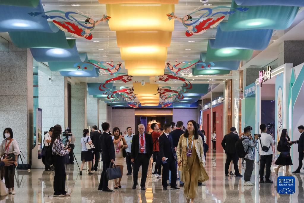 9月6日,与会嘉宾在第六届丝绸之路(敦煌)国际文化博览会上参观。