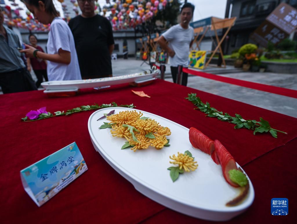 9月6日,在浙江省建德市寿昌古镇开幕的古镇好吃节上,由建德市餐饮协会制作的“鱼跃亚运”“腾龙飞天”“亚运定胜”“金牌满堂”等多道亚运主题菜品在现场展示,吸引了众多市民的眼球。