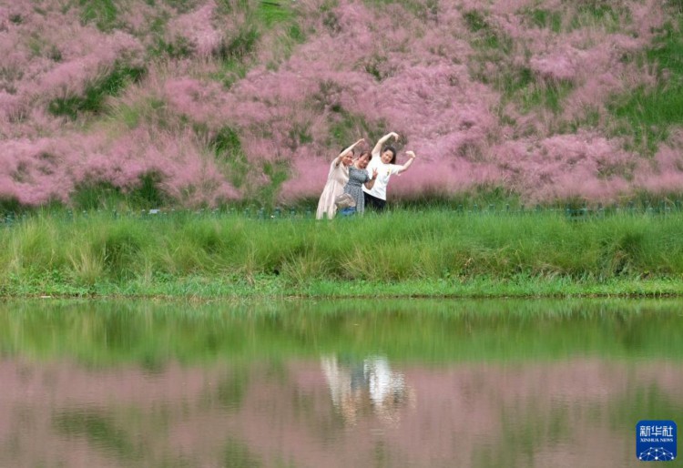 9月11日,游客在广西南宁市园博园观赏粉黛乱子草。 近日,广西南宁市园博园里的粉黛乱子草陆续披上粉红“衣裳”,宛如一抹粉红色的云霞。 新华社记者 周华 摄
