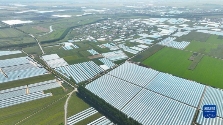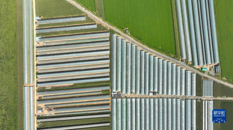9月7日拍摄的灯塔市柳条寨镇辽峰葡萄核心产区的葡萄大棚(无人机照片)。 近日,辽宁省灯塔市种植的辽峰葡萄喜迎丰收。灯塔市出产的辽峰葡萄远近闻名,目前种植面积约1万亩。当地已形成葡萄培育、种植、销售、仓储、加工相关产业链,葡萄是当地农民致富增收的特色产业。 新华社记者杨青摄
