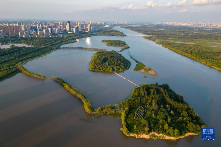 这是7月31日拍摄的太阳岛西区一湖三岛景观(无人机照片)。