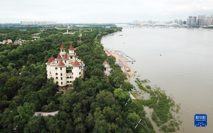 这是8月3日拍摄的太阳岛景区的一处欧式建筑(无人机照片)。