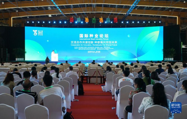 9月11日拍摄的第三十届中国北京种业大会国际种业论坛现场。 当日,第三十届中国北京种业大会在北京市通州区开幕。此次大会以“一粒种子 改变世界 种业振兴 北京先行”为主题,设置有主论坛、专业论坛、展览展示及多项专场活动,聚焦农作物、畜禽、水产、林果、微生物种业等专业领域,搭建特色种业交流交易平台。大会将持续到9月14日。 新华社记者 任超 摄