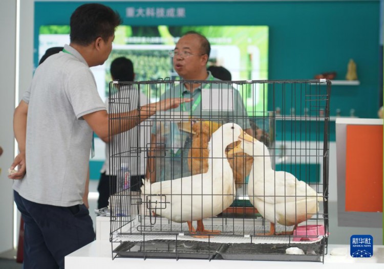 9月11日拍摄的第三十届中国北京种业大会种业振兴成果展现场。 当日,第三十届中国北京种业大会在北京市通州区开幕。此次大会以“一粒种子 改变世界 种业振兴 北京先行”为主题,设置有主论坛、专业论坛、展览展示及多项专场活动,聚焦农作物、畜禽、水产、林果、微生物种业等专业领域,搭建特色种业交流交易平台。大会将持续到9月14日。 新华社记者 任超 摄