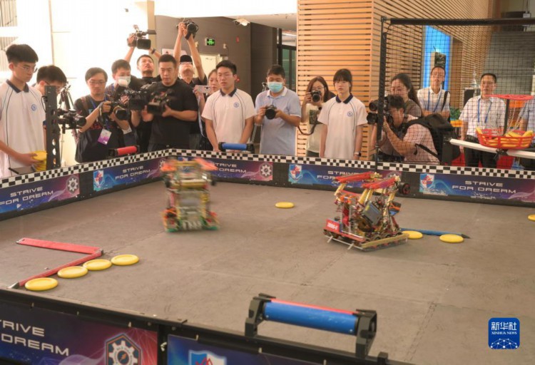 9月12日,福州第三中学学生进行机器人表演。 当日,以“网络安全进校园 护航青春助成长”为主题的2023年国家网络安全宣传周校园日活动在福建省福州第三中学举行。 新华社记者林善传摄
