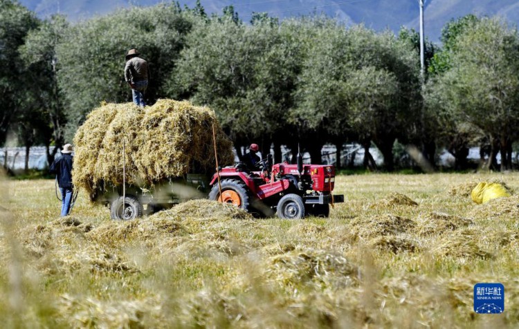 近日,西藏拉萨市曲水县青稞成熟,人们忙着收割青稞,感受丰收的喜悦。