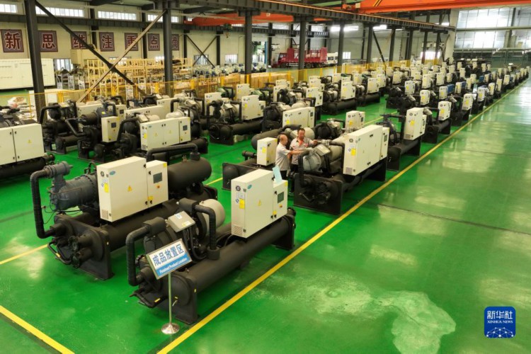 9月12日,工作人员在位于沧州市的河北益民五金制造股份有限公司成品区对地源热泵机组进行出厂前全面核对。 近年来,南皮县积极引导县域内五金机电企业加大科技创新力度,鼓励和支持企业自主培育研发团队,积极搭建产学研合作平台,不断提升产业集聚程度,推动五金机电产业“从机械化到智能化”升级,助推区域经济高质量发展。 新华社记者 骆学峰 摄
