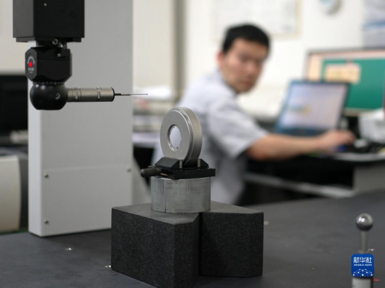 9月12日,工作人员在河北沧州立德机电有限公司精密测量室对产品尺寸和机械性能进行检测。 近年来,南皮县积极引导县域内五金机电企业加大科技创新力度,鼓励和支持企业自主培育研发团队,积极搭建产学研合作平台,不断提升产业集聚程度,推动五金机电产业“从机械化到智能化”升级,助推区域经济高质量发展。 新华社记者 骆学峰 摄