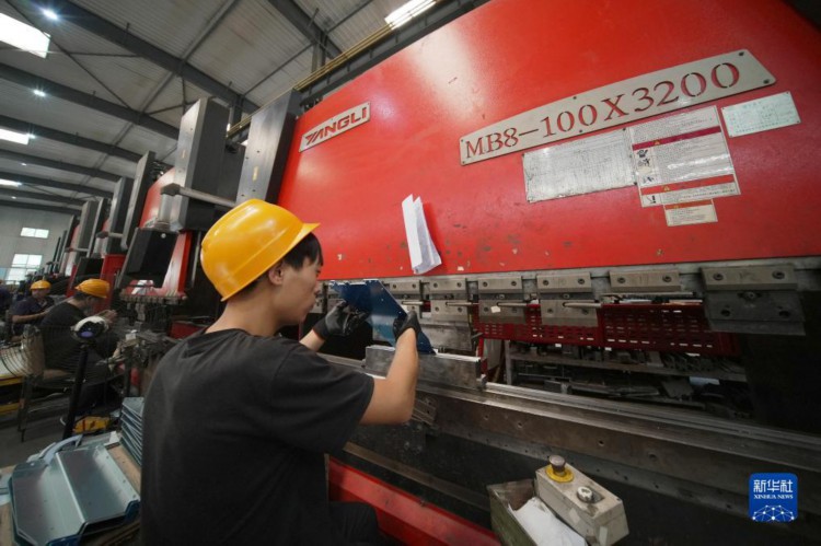9月12日,工作人员在沧州惠邦机电产品制造有限公司生产车间加工机箱部件。 近年来,南皮县积极引导县域内五金机电企业加大科技创新力度,鼓励和支持企业自主培育研发团队,积极搭建产学研合作平台,不断提升产业集聚程度,推动五金机电产业“从机械化到智能化”升级,助推区域经济高质量发展。 新华社记者 骆学峰 摄