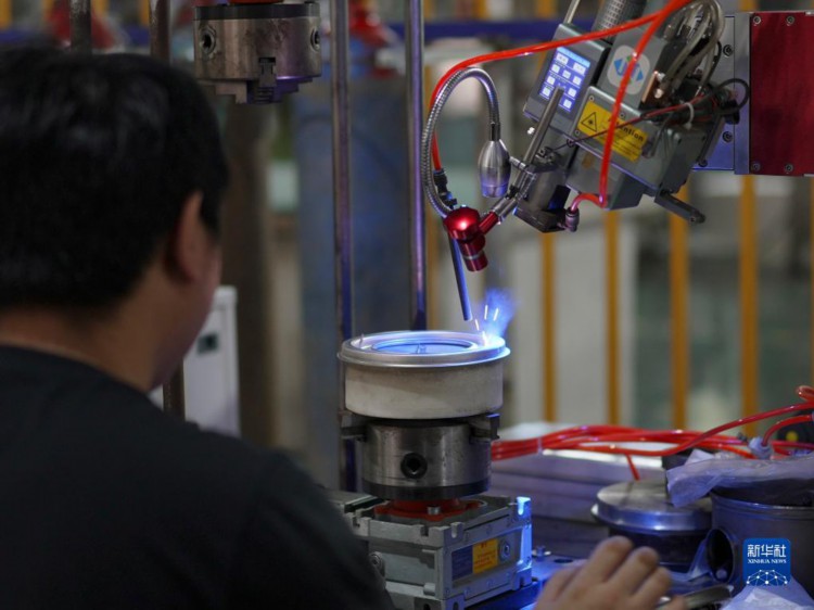 9月12日,工作人员在河北沧州立德机电有限公司生产车间进行激光焊接。