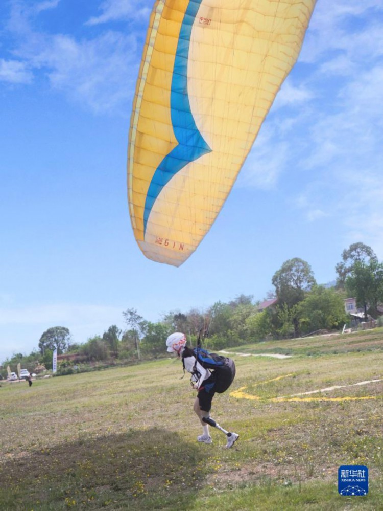 胡月在练习滑翔伞。新华社发(受访者提供)