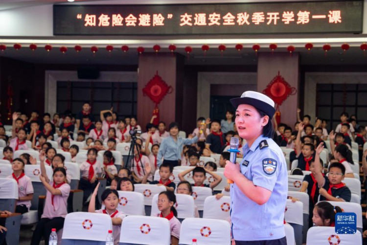 当日,在湖南省长沙市望城区新世博寄宿制小学,长沙市公安局望城分局交警大队开展“知危险会避险”交通安全秋季开学第一课活动。交警与辅警通过现场讲解交通安全知识、演示如何正确佩戴安全头盔、组织开展驾驶员视野盲区户外体验等方式,为学生普及交通安全知识,培养学生的交通安全意识,提高学生的自我防护能力。