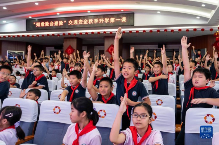 当日,在湖南省长沙市望城区新世博寄宿制小学,长沙市公安局望城分局交警大队开展“知危险会避险”交通安全秋季开学第一课活动。交警与辅警通过现场讲解交通安全知识、演示如何正确佩戴安全头盔、组织开展驾驶员视野盲区户外体验等方式,为学生普及交通安全知识,培养学生的交通安全意识,提高学生的自我防护能力。