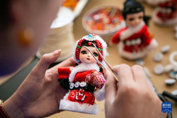 在唐克镇白河社区,合作社社员在制作“吉祥娃娃”配饰(8月24日摄)。 在四川省阿坝藏族羌族自治州若尔盖县唐克镇白河社区的手工合作社内,摆放着众多精致漂亮的手工娃娃,它们服饰各异,大小不同,颇具民族风情。它们的藏族名字叫“亚一则则”,意为“吉祥娃娃”。 2016年为发展壮大集体经济,若尔盖县唐克镇白河社区成立手工合作社,社员们将家乡唐克镇的传统文化结合现代创新设计,与模具公司合作,设计制作了“吉祥娃娃”。大到衣料辫子,小到头饰串珠,都是经过严格挑选后,由社员们一针一线缝制而成的。 目前,合作社提供妇女居家灵活就业岗位68个,社员们可以领取材料,居家制作,按件计酬,不仅大大增加了群众的收入,更打造出富含多民族文化特色的集体经济产业。 随着合作社的不断发展壮大,“吉祥娃娃”不断迭代升级、推陈出新,如今已远销海内外,在传播民族文化的同时为乡村振兴注入蓬勃动力。 新华社记者 邢广利 摄