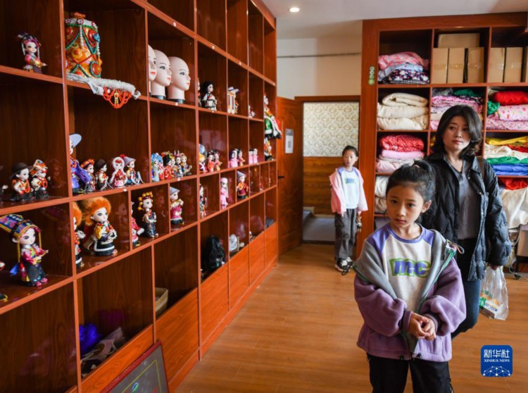 在唐克镇白河社区,游客慕名来到合作社内参观(8月24日摄)。 在四川省阿坝藏族羌族自治州若尔盖县唐克镇白河社区的手工合作社内,摆放着众多精致漂亮的手工娃娃,它们服饰各异,大小不同,颇具民族风情。它们的藏族名字叫“亚一则则”,意为“吉祥娃娃”。 2016年为发展壮大集体经济,若尔盖县唐克镇白河社区成立手工合作社,社员们将家乡唐克镇的传统文化结合现代创新设计,与模具公司合作,设计制作了“吉祥娃娃”。大到衣料辫子,小到头饰串珠,都是经过严格挑选后,由社员们一针一线缝制而成的。 目前,合作社提供妇女居家灵活就业岗位68个,社员们可以领取材料,居家制作,按件计酬,不仅大大增加了群众的收入,更打造出富含多民族文化特色的集体经济产业。 随着合作社的不断发展壮大,“吉祥娃娃”不断迭代升级、推陈出新,如今已远销海内外,在传播民族文化的同时为乡村振兴注入蓬勃动力。 新华社记者 王曦 摄
