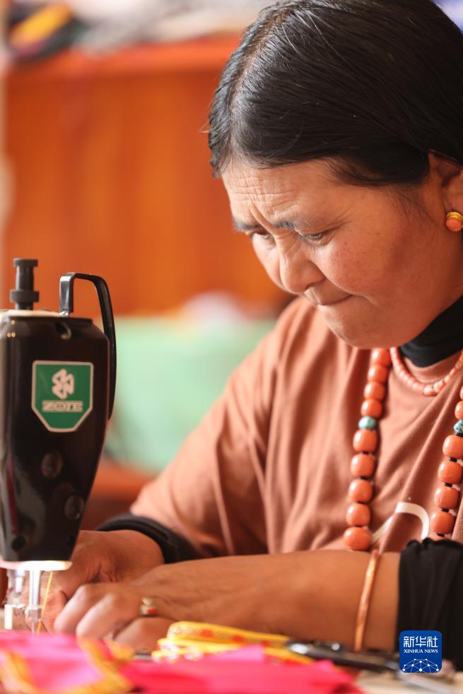 在唐克镇白河社区,合作社社员在缝制“吉祥娃娃”衣料(8月24日摄)。 在四川省阿坝藏族羌族自治州若尔盖县唐克镇白河社区的手工合作社内,摆放着众多精致漂亮的手工娃娃,它们服饰各异,大小不同,颇具民族风情。它们的藏族名字叫“亚一则则”,意为“吉祥娃娃”。 2016年为发展壮大集体经济,若尔盖县唐克镇白河社区成立手工合作社,社员们将家乡唐克镇的传统文化结合现代创新设计,与模具公司合作,设计制作了“吉祥娃娃”。大到衣料辫子,小到头饰串珠,都是经过严格挑选后,由社员们一针一线缝制而成的。 目前,合作社提供妇女居家灵活就业岗位68个,社员们可以领取材料,居家制作,按件计酬,不仅大大增加了群众的收入,更打造出富含多民族文化特色的集体经济产业。 随着合作社的不断发展壮大,“吉祥娃娃”不断迭代升级、推陈出新,如今已远销海内外,在传播民族文化的同时为乡村振兴注入蓬勃动力。 新华社记者 王曦 摄