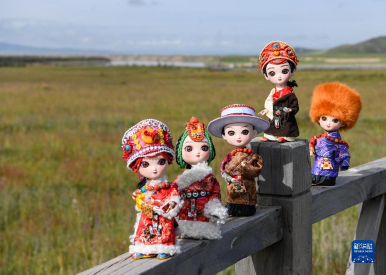 这是8月24日在若尔盖县黄河九曲第一湾拍摄的“吉祥娃娃”。 在四川省阿坝藏族羌族自治州若尔盖县唐克镇白河社区的手工合作社内,摆放着众多精致漂亮的手工娃娃,它们服饰各异,大小不同,颇具民族风情。它们的藏族名字叫“亚一则则”,意为“吉祥娃娃”。 2016年为发展壮大集体经济,若尔盖县唐克镇白河社区成立手工合作社,社员们将家乡唐克镇的传统文化结合现代创新设计,与模具公司合作,设计制作了“吉祥娃娃”。大到衣料辫子,小到头饰串珠,都是经过严格挑选后,由社员们一针一线缝制而成的。 目前,合作社提供妇女居家灵活就业岗位68个,社员们可以领取材料,居家制作,按件计酬,不仅大大增加了群众的收入,更打造出富含多民族文化特色的集体经济产业。 随着合作社的不断发展壮大,“吉祥娃娃”不断迭代升级、推陈出新,如今已远销海内外,在传播民族文化的同时为乡村振兴注入蓬勃动力。 新华社记者 王曦 摄