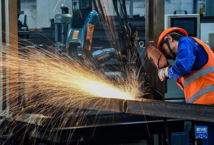 9月14日,工人在渝湘高铁重庆至黔江段站前3标智能化钢构厂作业。 目前,由中铁一局承建的渝湘高铁重庆至黔江段站前3标项目正加紧建设,进展顺利。 渝湘高铁重庆至黔江段从重庆站引出,止于重庆市黔江区,设计时速350公里,是国家中长期铁路网规划的“八纵八横”高铁网厦门至重庆高铁主通道的重要组成部分。建成通车后,将有效缩短重庆中心城区与渝东南地区的距离,促进沿线经济发展。 新华社记者 王全超 摄