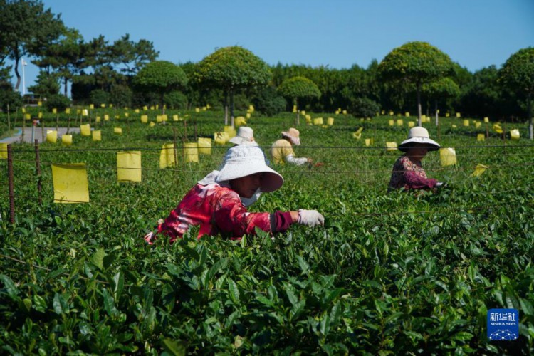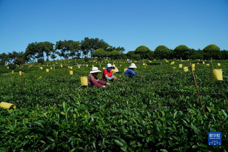 9月14日,在山东省诸城市桃林镇,茶农在茶园里采摘秋茶。 近日,山东省诸城市迎来秋茶最佳采摘期,当地茶农忙着采摘、加工秋茶,供应市场。近年来,诸城市因地制宜发展茶叶种植业,目前全市茶叶种植面积达3.7万亩,茶产业逐渐发展成为当地富民增收的特色产业。 新华社记者 徐速绘 摄