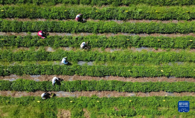 9月14日,在山东省诸城市桃林镇,茶农在茶园里采摘秋茶(无人机照片)。 近日,山东省诸城市迎来秋茶最佳采摘期,当地茶农忙着采摘、加工秋茶,供应市场。近年来,诸城市因地制宜发展茶叶种植业,目前全市茶叶种植面积达3.7万亩,茶产业逐渐发展成为当地富民增收的特色产业。 新华社记者 徐速绘 摄