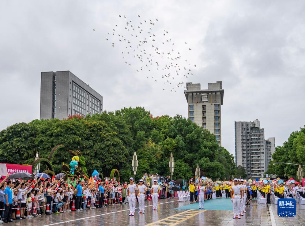 当日,杭州亚运会火炬在浙江省丽水传递。