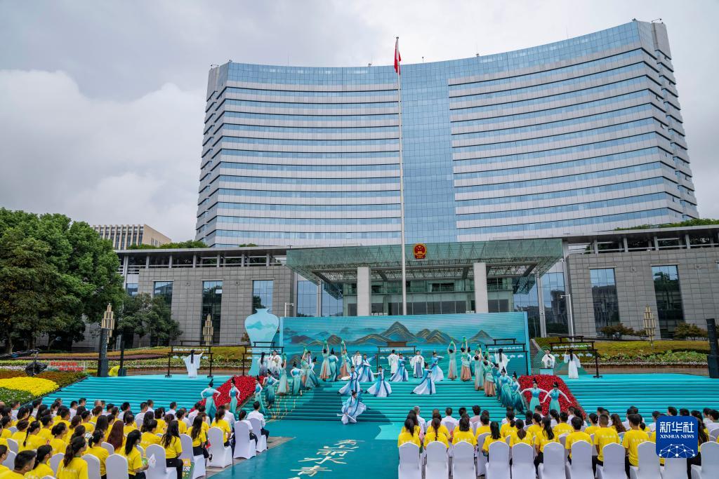 这是杭州亚运会火炬传递丽水站起跑仪式现场(9月16日摄)。