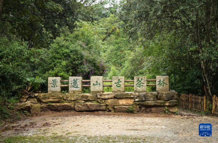 在景迈大寨古茶林入口处矗立有“景迈山古茶林”字样的标识(8月29日摄)。新华社记者 李贺 摄