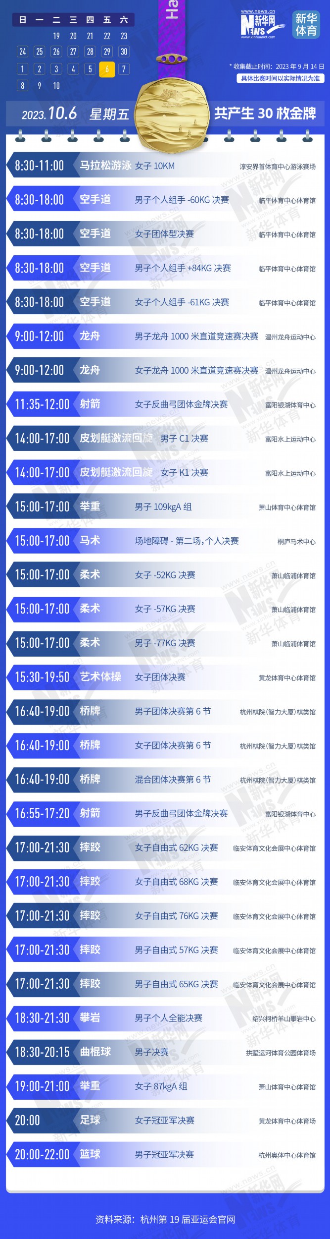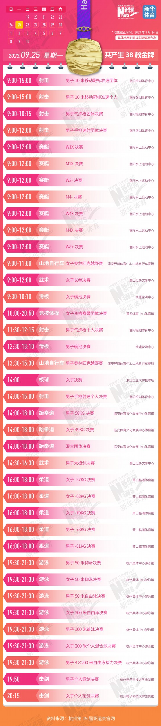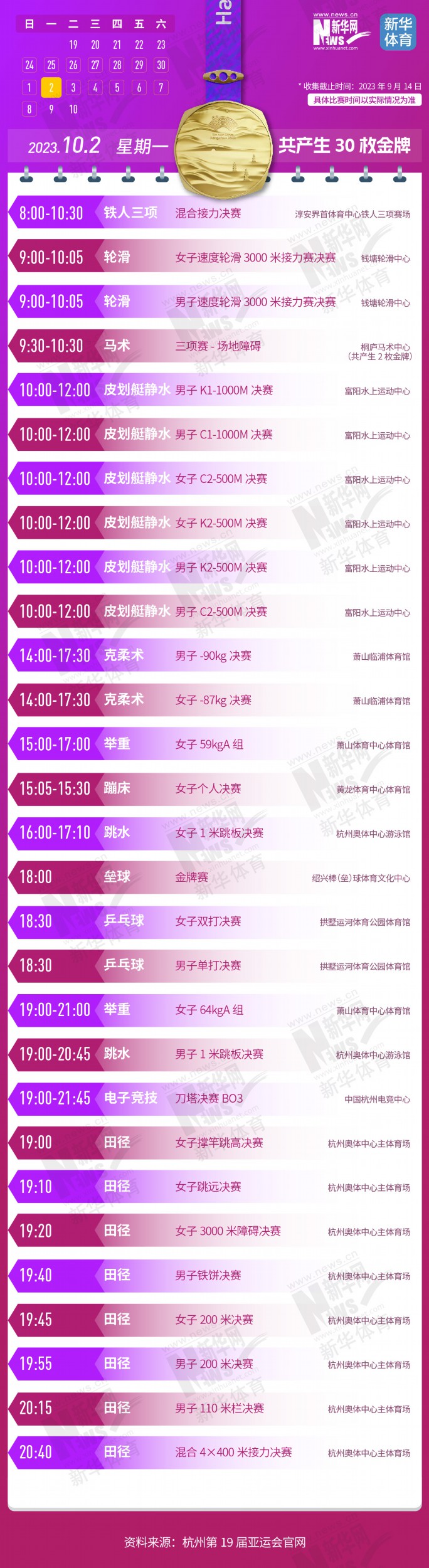杭州第19届亚运会即将开幕。本届亚运会预计将产生481枚金牌,快收藏这份金牌赛事日历,助你精准观赛!