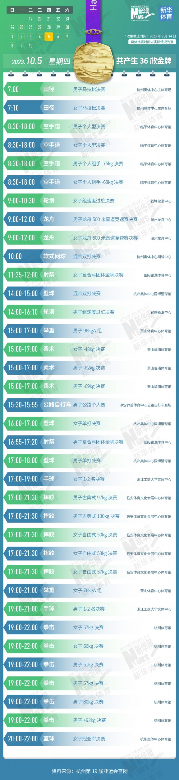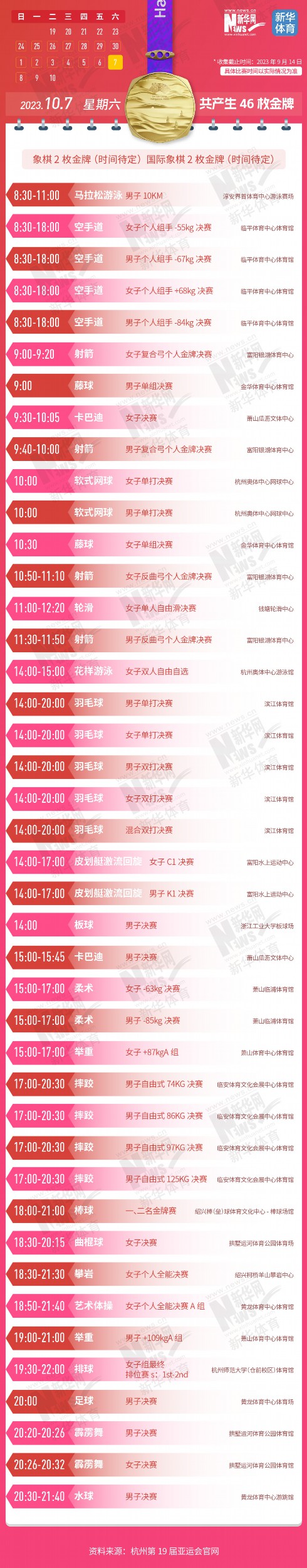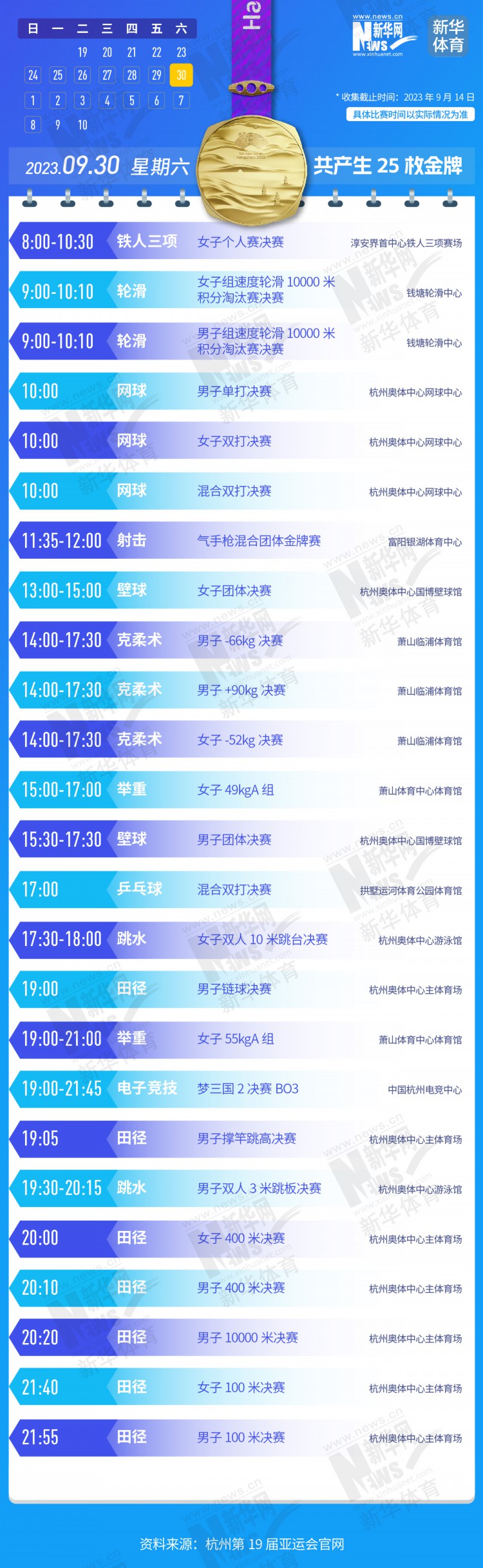 杭州第19届亚运会即将开幕。本届亚运会预计将产生481枚金牌,快收藏这份金牌赛事日历,助你精准观赛!