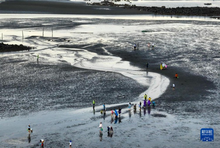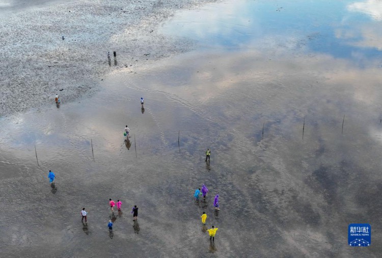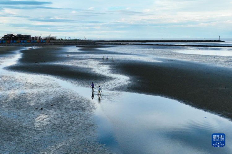 9月16日,游客在启东“十里海湾”滩涂上游玩(无人机照片)。 近年来,江苏省启东市依托丰富的旅游资源和独特的区位优势,加快文旅融合发展,不断扩大旅游产品供给,持续完善基础设施建设和接待服务设施建设,推动旅游业高质量发展。 新华社记者 季春鹏 摄