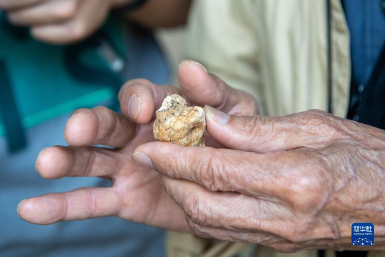 9月14日,黄万波与考古发掘队队员在仔细观察刚出土的化石。