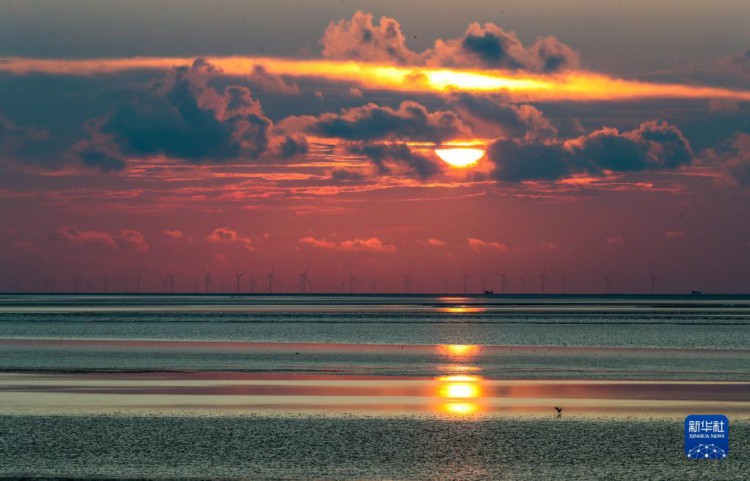 晨曦下的盐城东台条子泥湿地(2023年9月1日摄)。