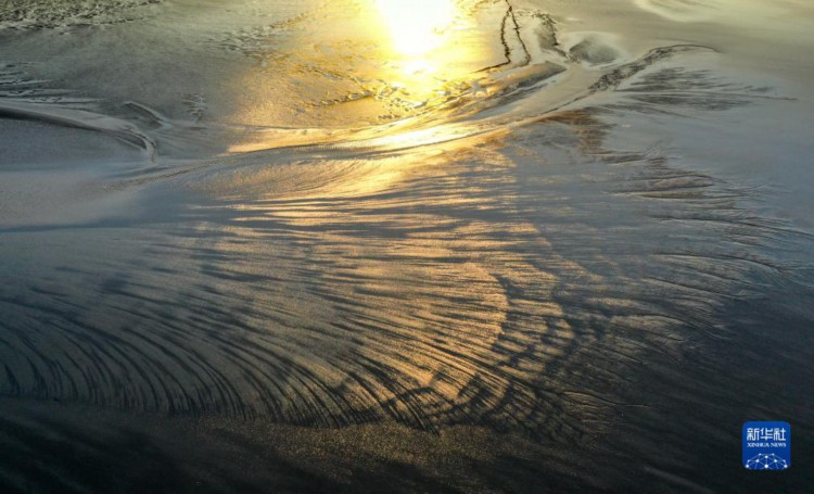 夕阳下盐城东台条子泥湿地景色(2023年9月1日摄,无人机照片)。