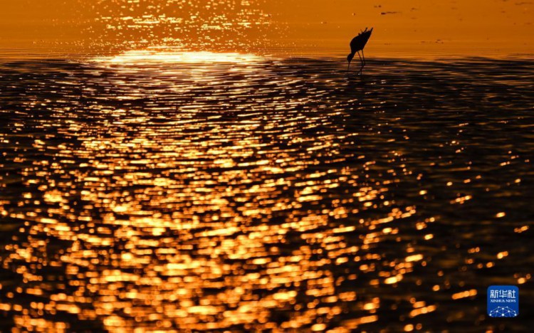 这是盐城东台条子泥湿地日落景色(2023年8月31日摄,无人机照片)。