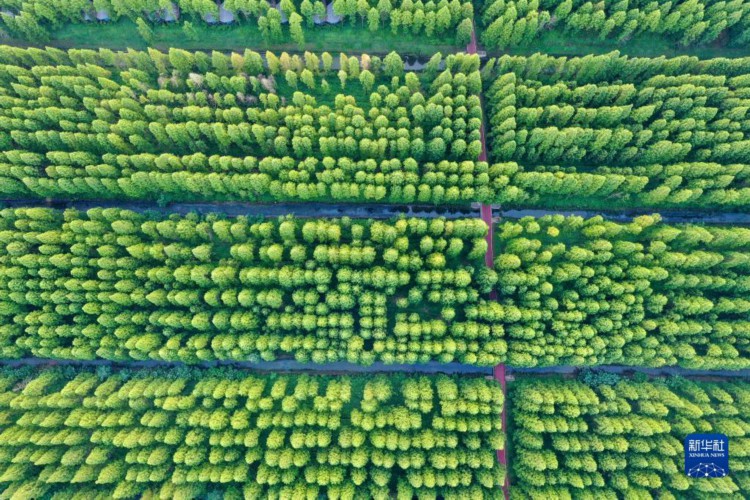 江苏黄海海滨国家森林公园景色(2023年8月18日摄,无人机照片)。