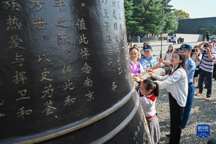 9月18日,社会各界代表在侵华日军南京大屠杀遇难同胞纪念馆撞响和平大钟。 今年是“九一八事变”爆发92周年。9月18日,“铭记历史 勿忘九一八”主题活动在侵华日军南京大屠杀遇难同胞纪念馆举行,社会各界代表撞响和平大钟,缅怀遇难同胞,祈愿世界和平。 新华社记者 李博 摄 |