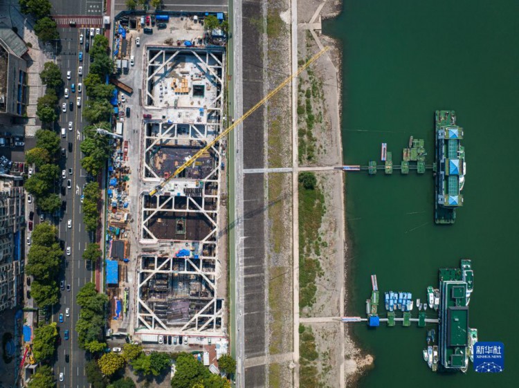 9月17日,三峡集团旗下长江环保集团建设者在宜昌市“一江两岸”污水厂网新建、改扩建项目大公桥调蓄池施工现场加紧建设(无人机照片)。 近年来,湖北宜昌等长江沿岸城市与三峡集团合作,加紧水环境综合整治工程建设,通过城镇污水治理、岸线生态修复、兴建“公园式”污水处理厂、城市智慧管网管控、补齐雨水污水管网短板等措施,全链条推进城市水环境治理。如今,分布在长江沿线的“城市智慧水管家”,成为一江清水浩荡东流的有力保障。 新华社记者肖艺九摄