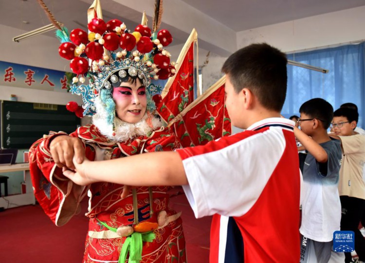 9月19日,威县乱弹传承人时敬华向白果树中心小学学生传授乱弹技艺。