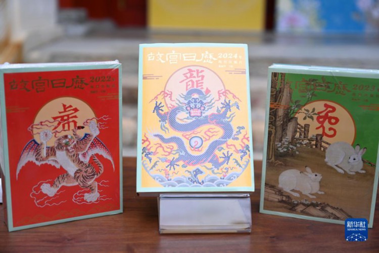 这是在故宫拍摄的2022年、2023年、2024年《故宫日历》(9月19日摄)。 当日,2024年《故宫日历》发布会在北京故宫博物院举行。2024年《故宫日历》创新推出了家族系列,分别是:以生肖和节庆为主题的《故宫日历·2024年》、以书画作品为主题的《故宫日历:书画版·2024年》、以文物故事为特色的《故宫日历·2024年·儿童版》以及《故宫日历·汉英对照版·2024年》。 新华社记者 金良快 摄