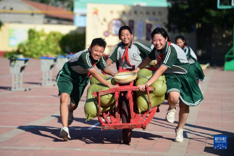 当日,河北沧州市新华区荣官屯小学举办“校园丰收节”,旨在培育学生正确的劳动价值观,让学生在丰富的活动中体会到劳动之美、丰收之乐。