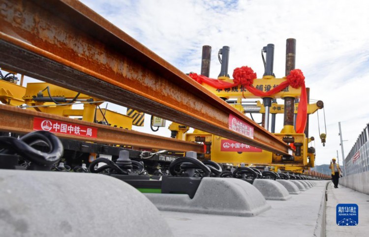 9月21日,中铁一局建设者采用我国自主研发的新型智能本邻两线铺轨机组进行铺轨作业,该机组可实现跨线铺轨,使高铁线路轨道铺设更加高效。